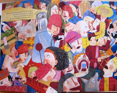 "Horror Vacui" o miedo al vacío es lo que caracteriza este tipo de composición. Aquí la multitud de personajes se mueve por todo el espacio sin dejar un trocito libre. Esta manera de representar un conjunto numeroso de personajes es, a mi parecer, la más eficaz para explicar al lector la sensación de gran masa de gente y bullicio. Parece incluso que pudieras chocarte con ellos.